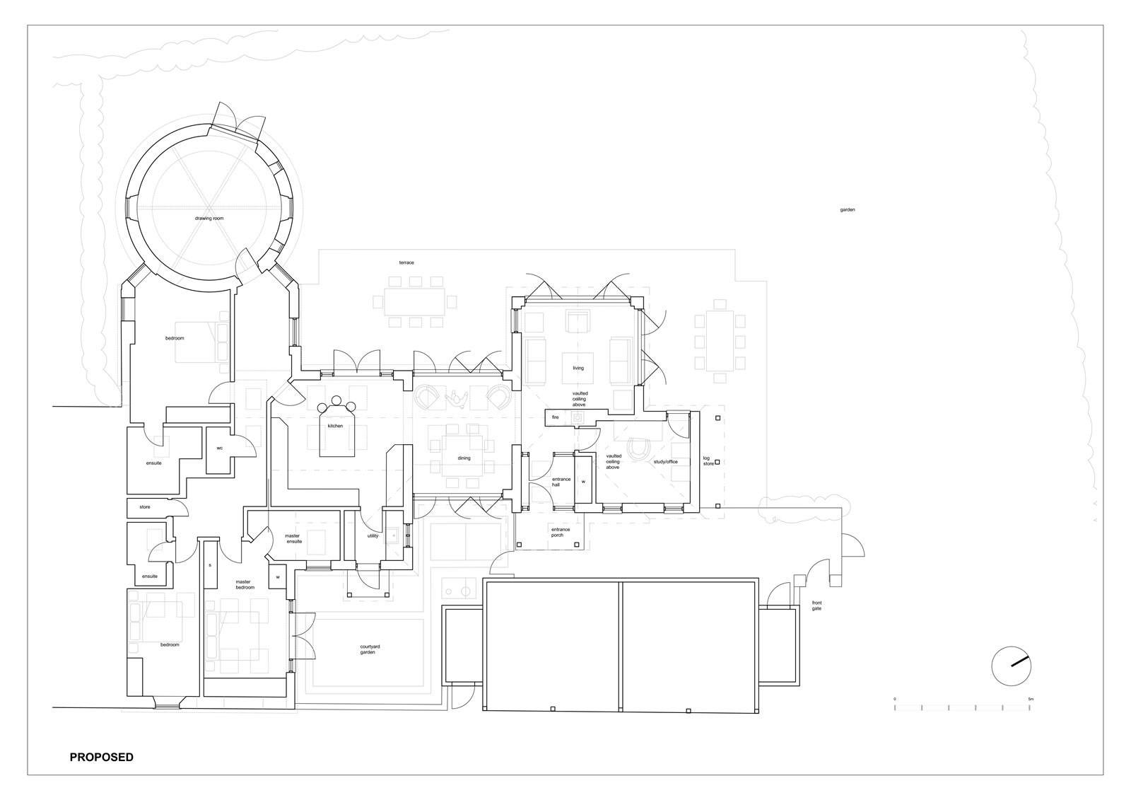 Successfully achieved Planning consent for this e tension and refurbishment to a Grade II Listed property in rural location within Conservation Area designated Greenbelt. The proposals responded to the client’s requirements to crest additional living accommodation and reconfigure the access and entrance to the property; to optimise the benefit of natural daylight and to open up views of the surrounding countryside; improving connectivity between internal and external through, creating new private courtyard and open access to private garden.