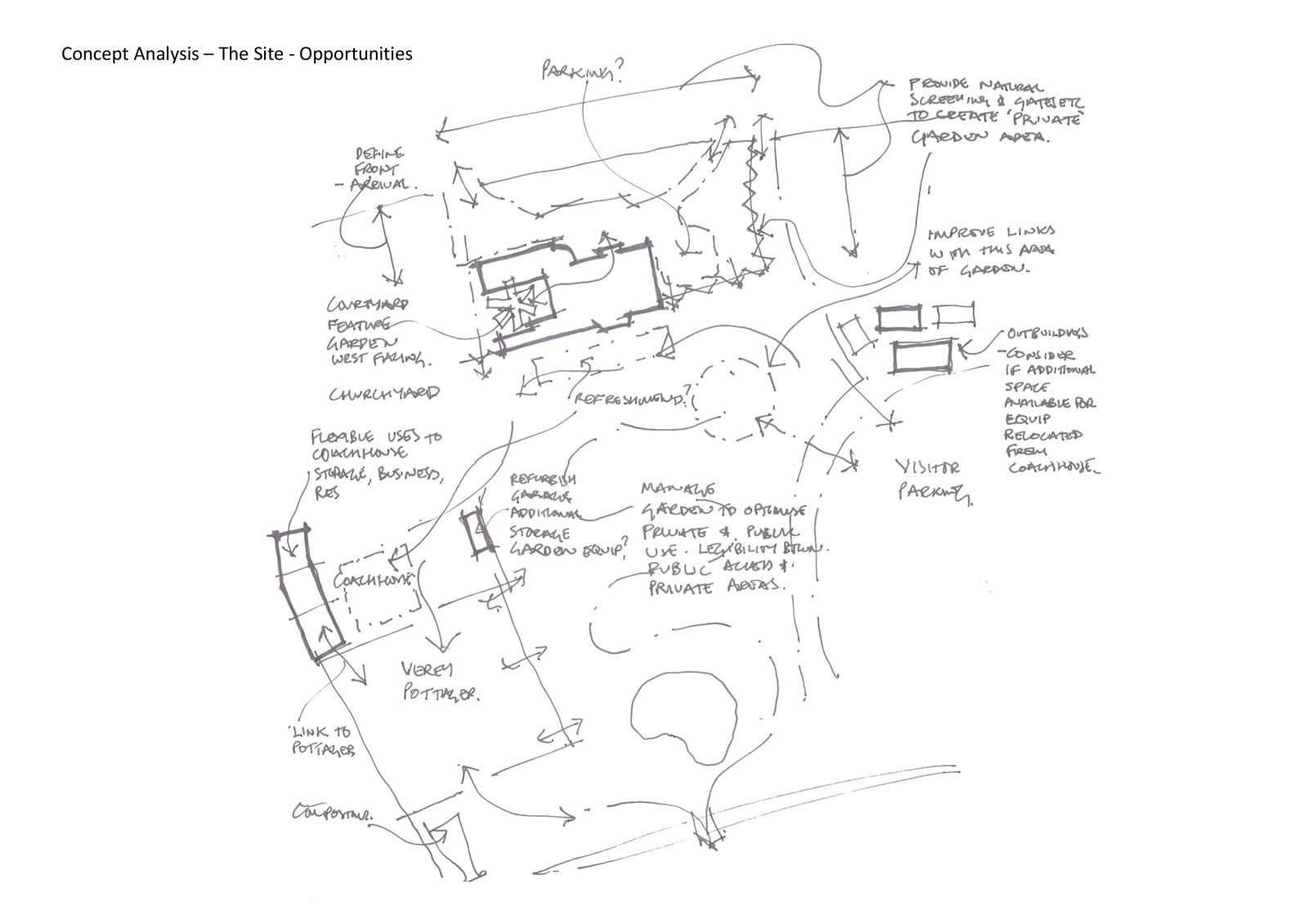 The concept design options provided by Lindley Architects considered a masterplan vision for the site as a whole in addition to single storey extension to create open plan kitchen, dining area and bright living space that linked to the garden.