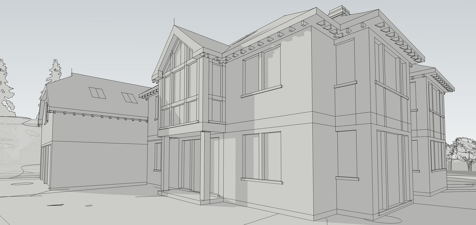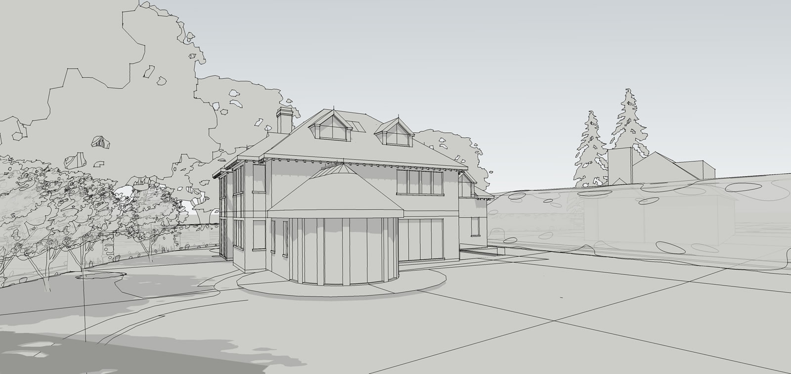 a new build Arts & Crafts dwelling house, designed and detailed to integrated with the surrounding