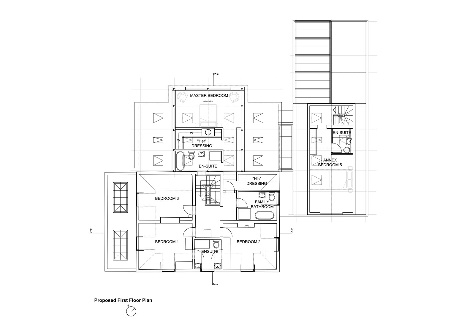 Remodelling internally and extending to the rear over two floors to create additional living space that opened into the garden with new master bedroom suite above. Ground floor links to new swimming pool and garage wing with annex accommodation above.