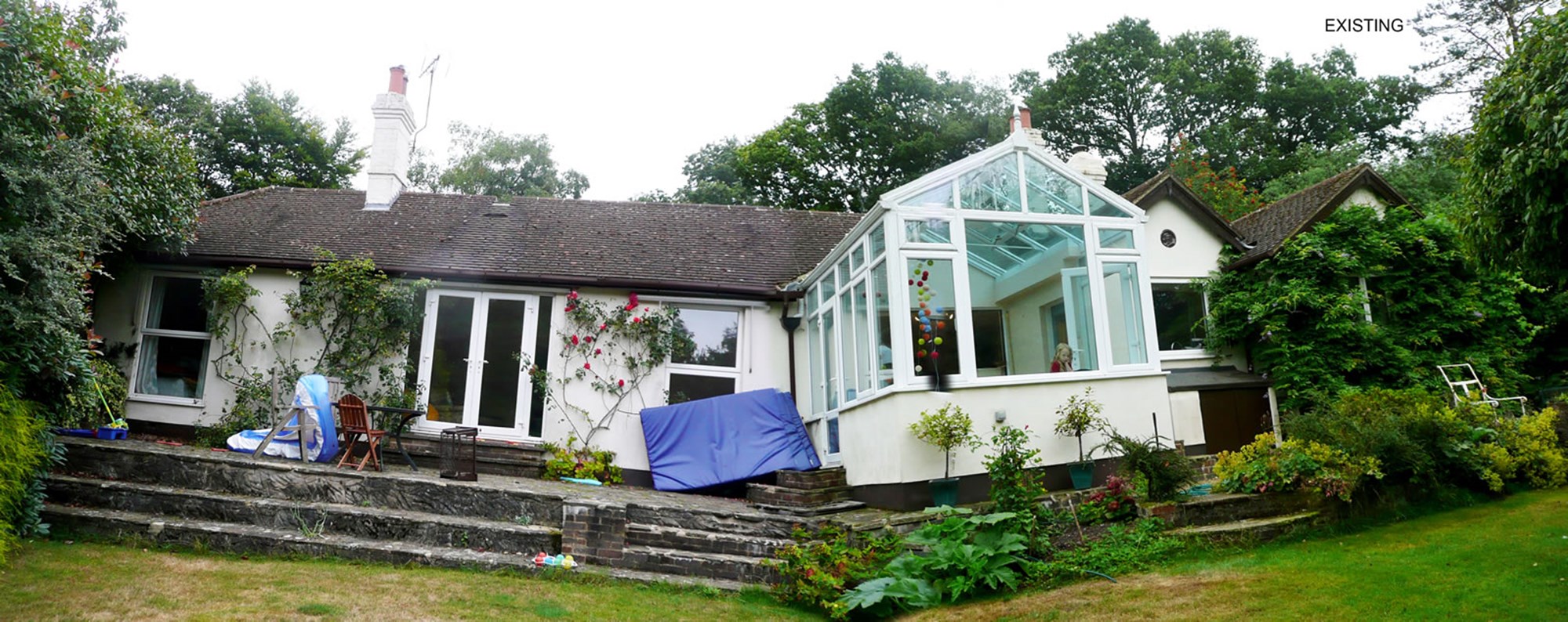 Concept design for refurbishment and extension of existing bungalow located within the Greenbelt to respond to modern family life with reconfiguration to create contemporary open plan living and sleeping accommodation that benefits from connectivity and views towards the rear and orientation towards the south to benefit from enhanced levels of natural daylight. The character of the property is transformed using a selective palette of materials and simple detailing and design to reflect the contemporary transformation.