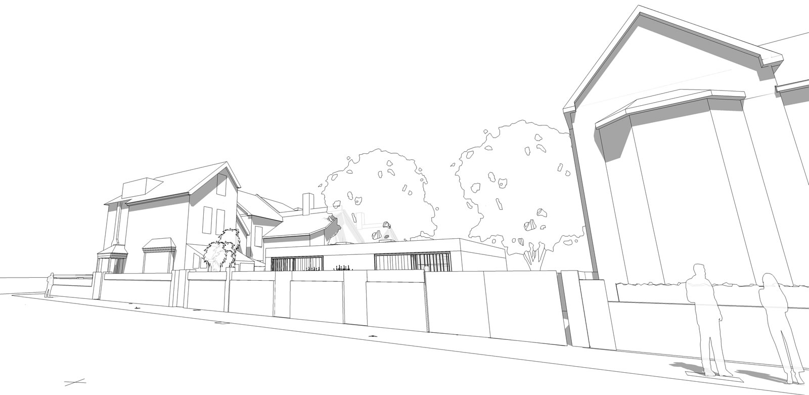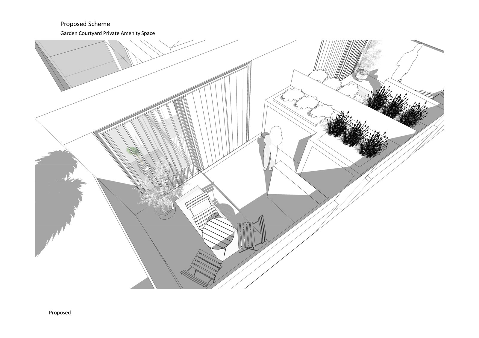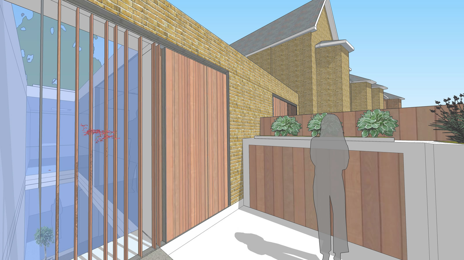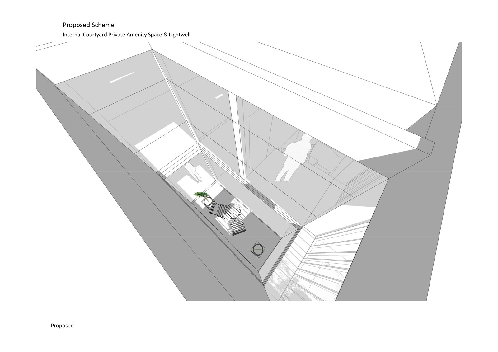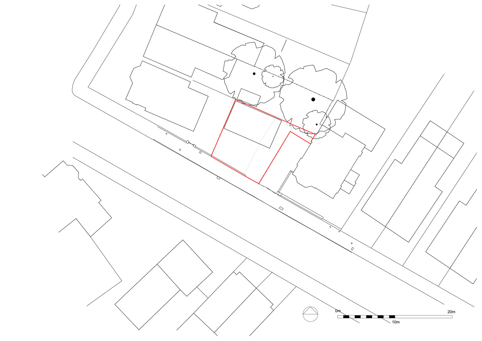 Proposed development of rear garden of a corner plot to create two new 2 bedroom dwellings. Informed by a detailed assessment of the existing context and surrounding character, scale and form, the innovative design approach, reflecting the scale of a single storey garage block to the rear garden, created new dwellings with central light shaft and contained front garden creating surplus levels of private amenity and good levels of natural daylight.
