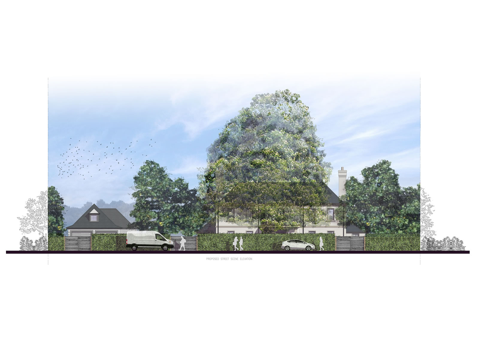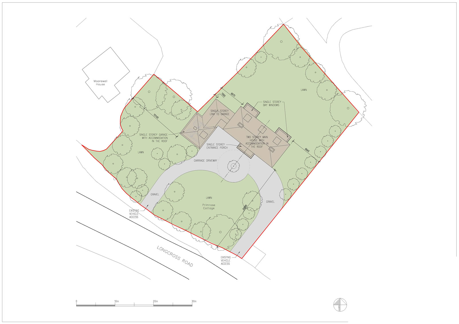 site to include a replacement dwelling with separate garden studio and double garage. The house