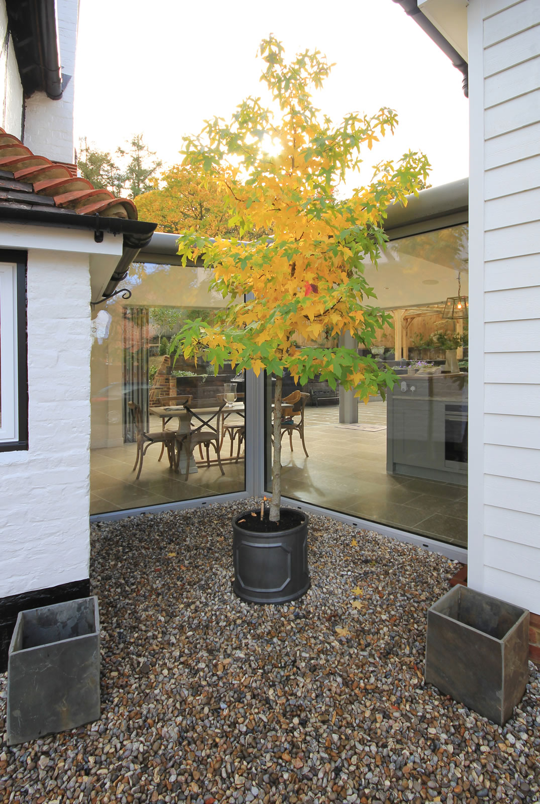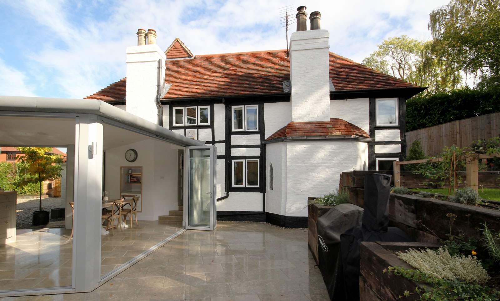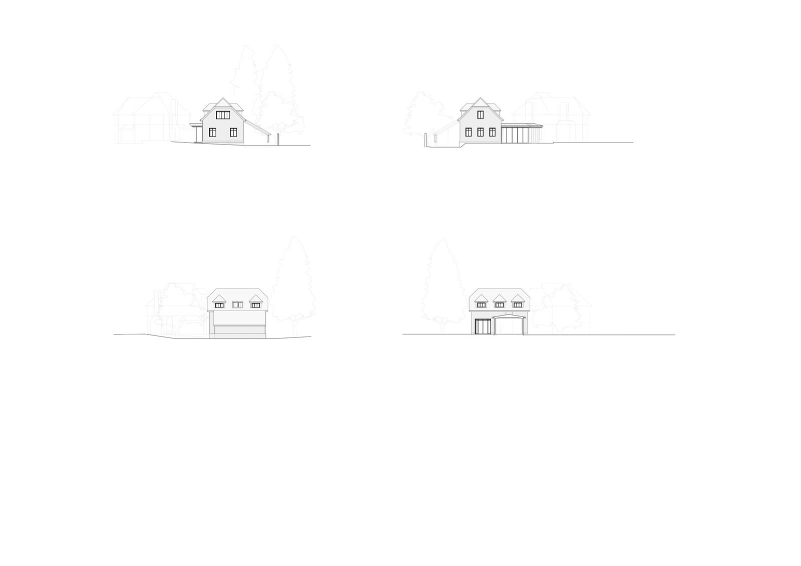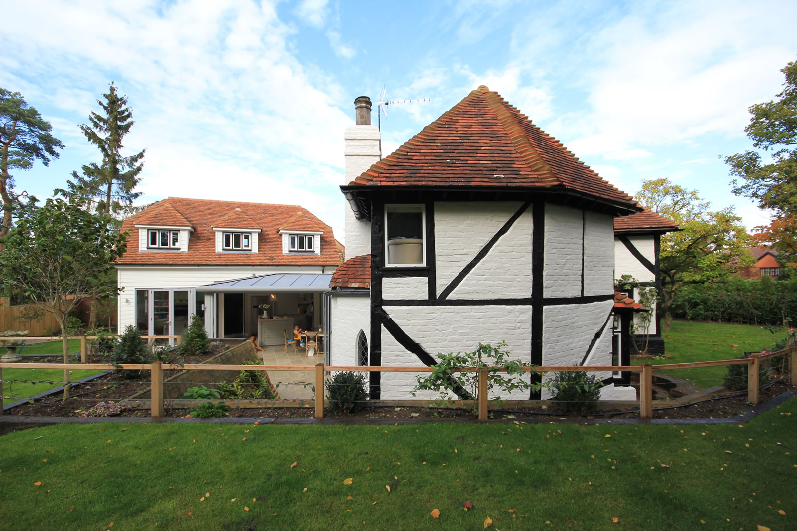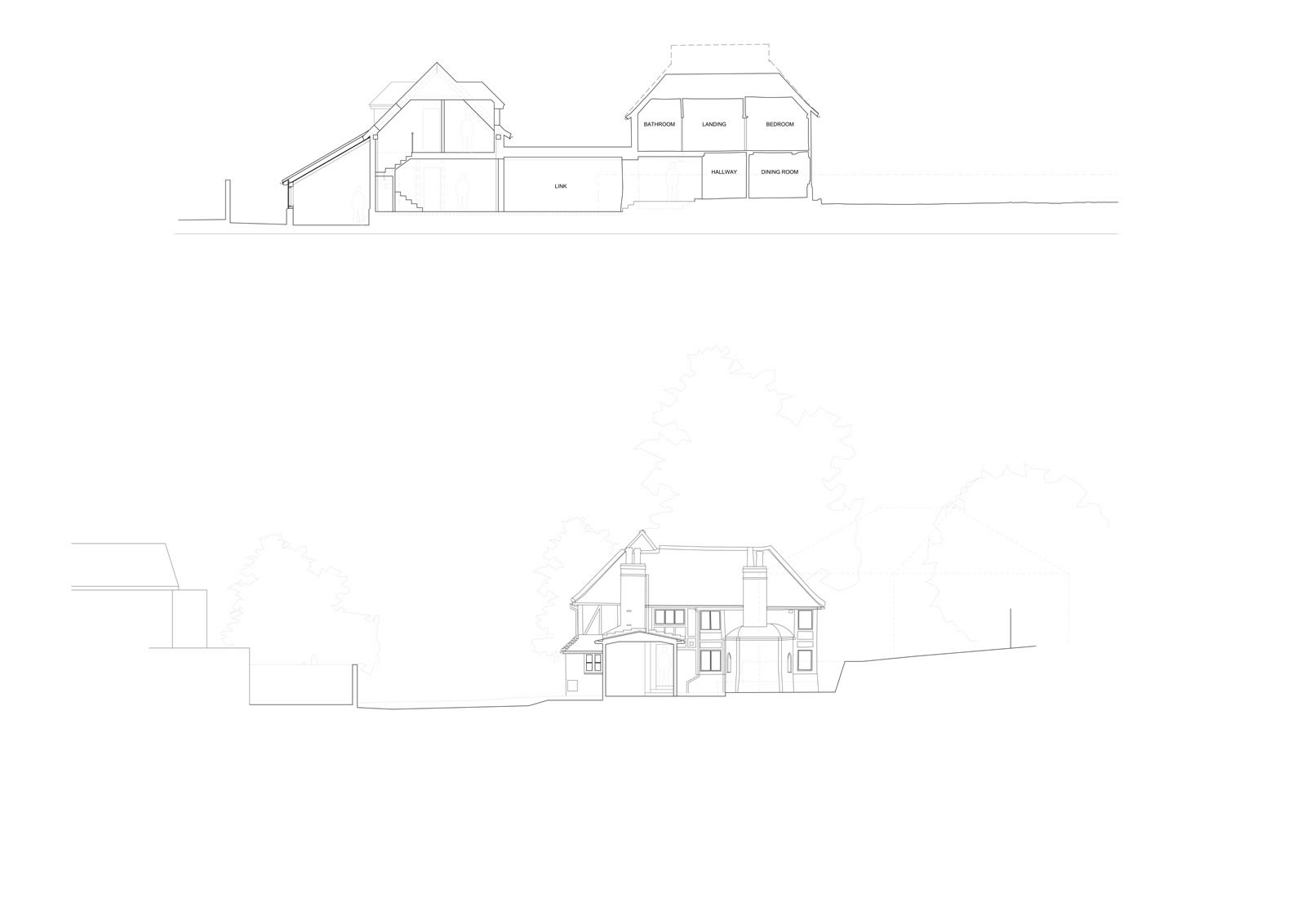 After purchasing the Grade II dwelling, the owners were keen to add more space and consider options to transform the existing arrangement to meet the needs of a modern family home. We worked with the owners to preserve the period character and appeal of the property whilst providing additional accommodation through a sympathetic extension that respects the original dwelling. The proposed extension includes a traditional two storey oak framed structure that utilises a common palette of materials (clay roof, tiles, timber) connecting with the original through a glass link. The extra space included a new kitchen, dining and living area and additional sleeping accommodation as well as a boot-room, utility and car-port. The proposals marry the traditional with the contemporary as the internal spaces are filled with light and open out to connect with the garden.