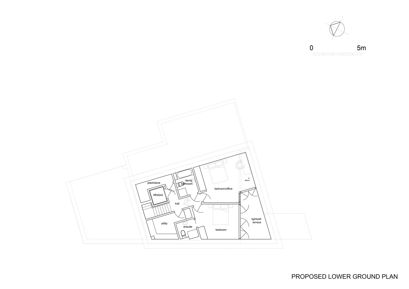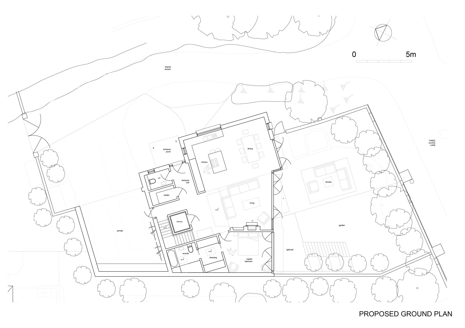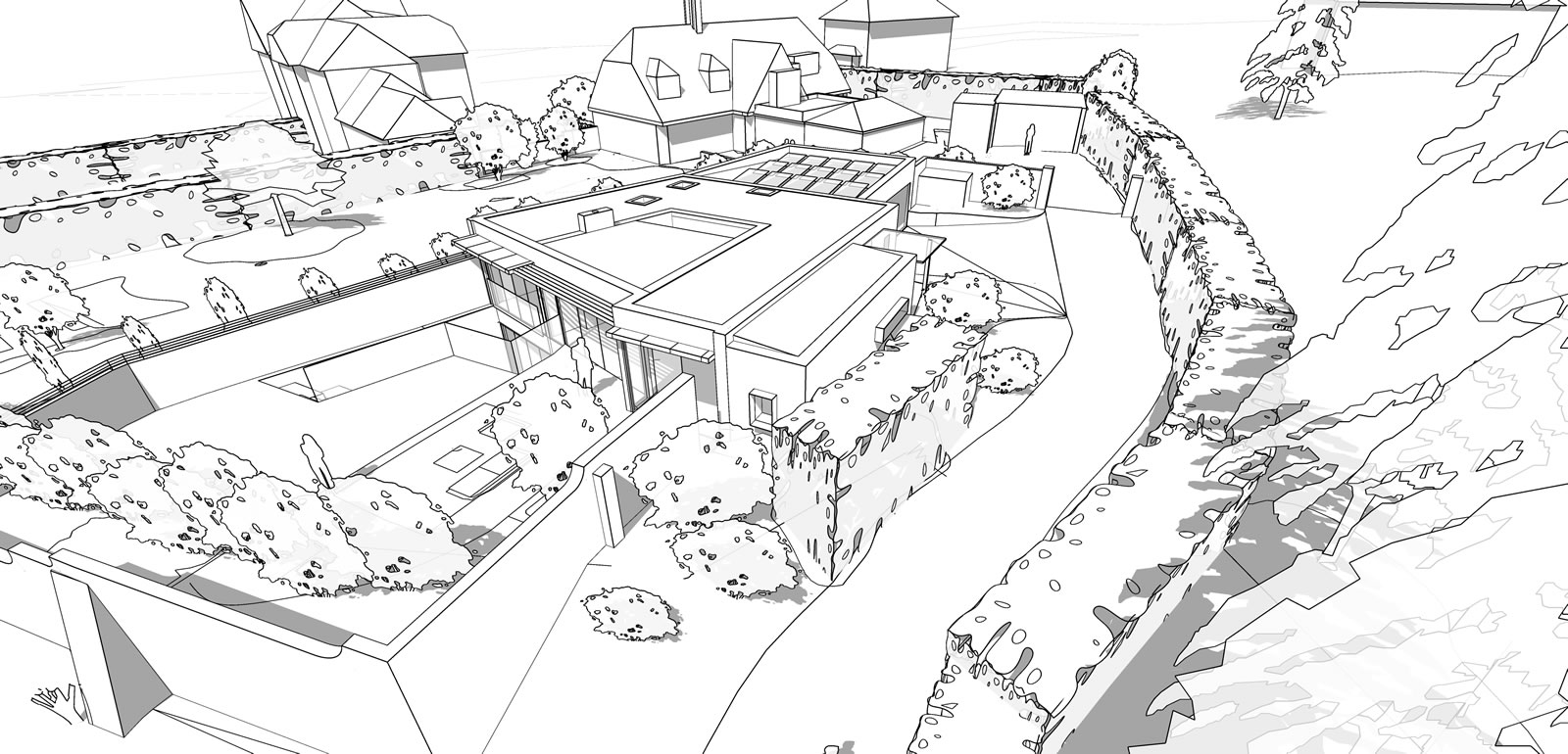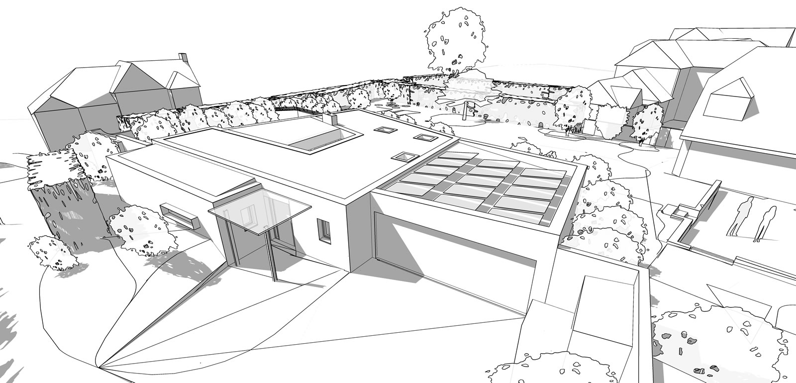 Development within garden of existing retained dwelling to create dream home incorporating sustainable design to future proof for senior age living and to minimise carbon footprint and dependency upon fossil fuels. Proposed new build dwelling arranged over two floors as a sunken earth dwelling with 3 bedrooms and garaging for two cars as well as an open plan kitchen, dining and living space benefitting from far reaching views.