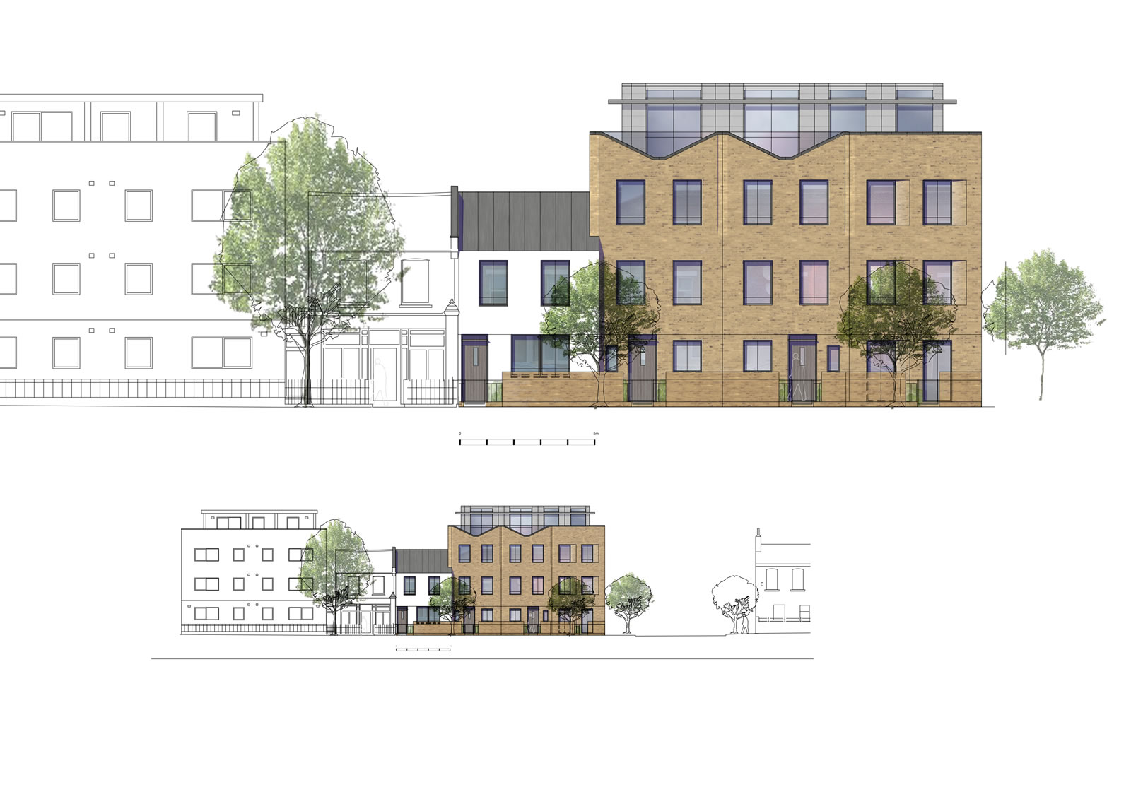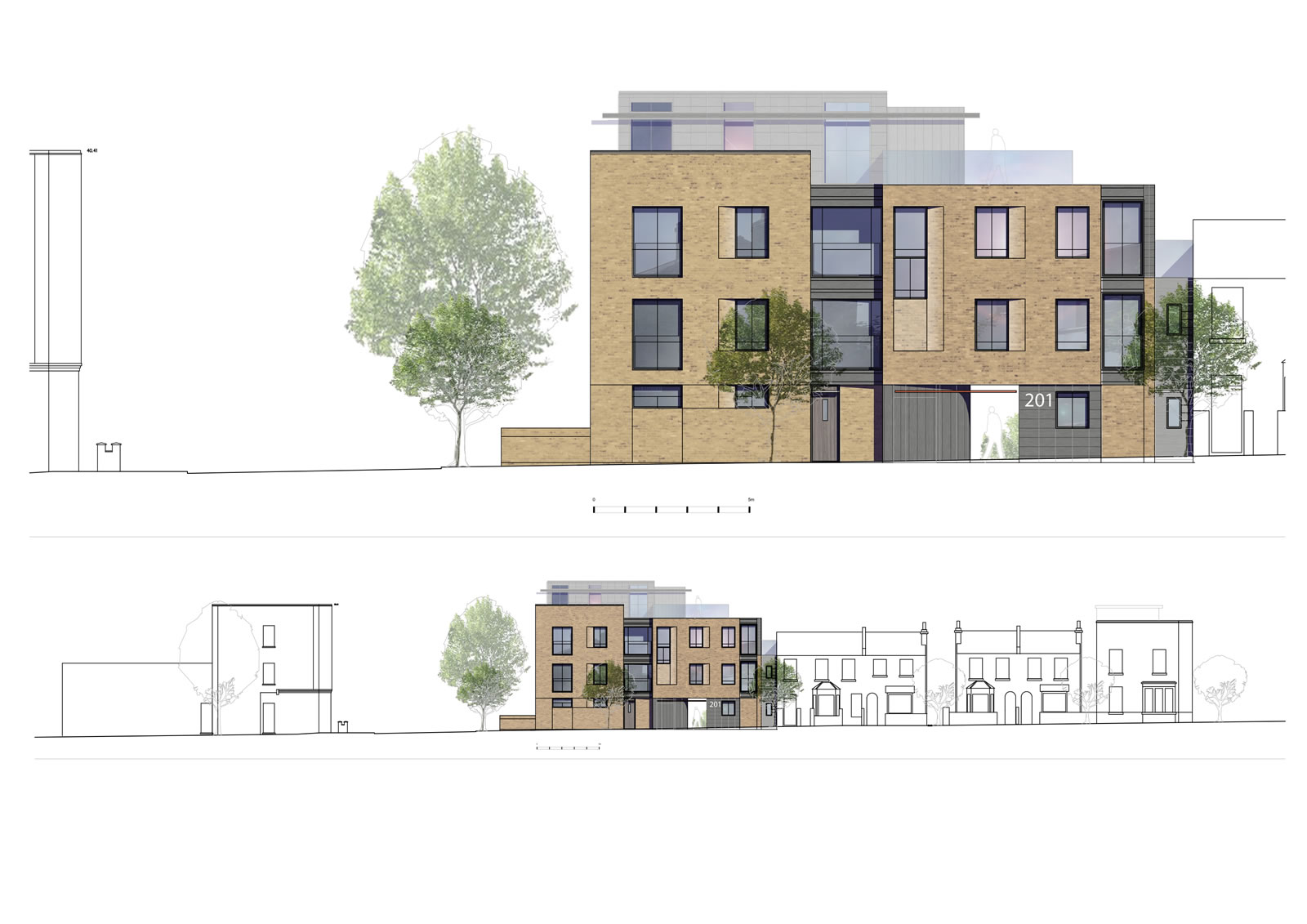 The redevelopment of an existing brownfield site with retail use. The challenge was to obtain planning for change of use to include residential upon this focal corner plot. The scheme provides new high quality development including 8 contemporary apartments and 1 new dwelling. The scheme is designed to integrate with the surrounding context as well as to benefit from roof top amenity with panoramic views over London.